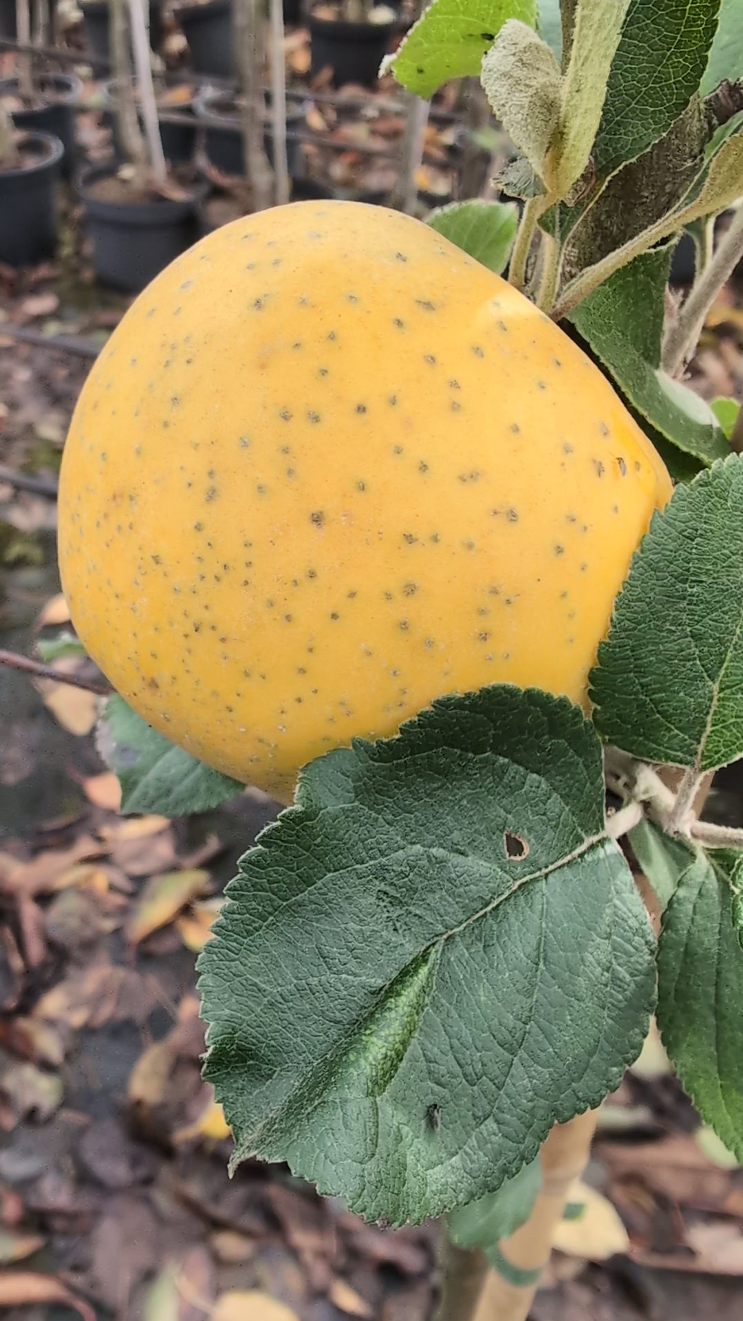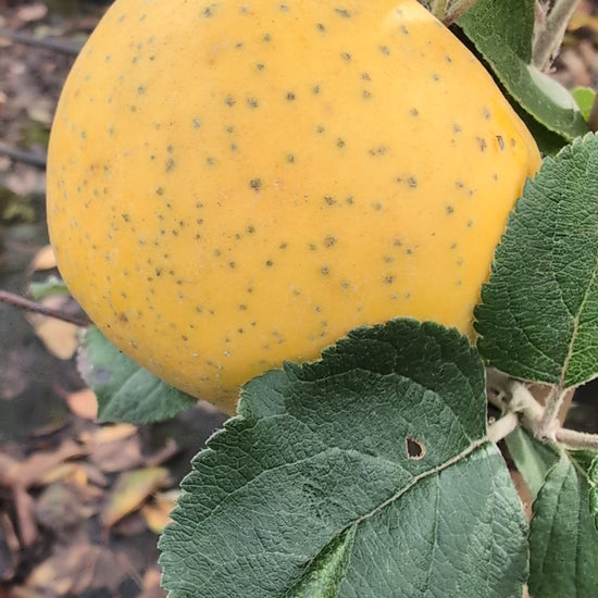 - Schale: Die Ananasrenette hat eine dünne, gelblich-grüne bis goldgelbe Schale, die oft mit leicht rötlichen Schattierungen und kleinen Rostflecken versehen ist – ein typisches Merkmal alter Sorten.