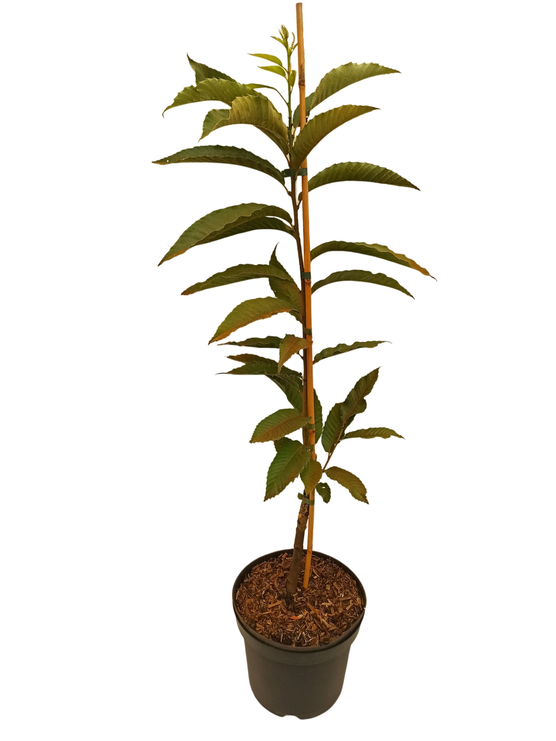 Die Esskastanie 'Belle Epine' ist eine bewährte und robuste Sorte, die sich besonders für den Anbau im Hausgarten eignet. Sie zeichnet sich durch eine mittlere bis starke Wuchskraft aus und bildet eine breite, gut verzweigte Krone. Ihre Blätter sind länglich, tiefgrün und bieten im Herbst eine attraktive Färbung.
