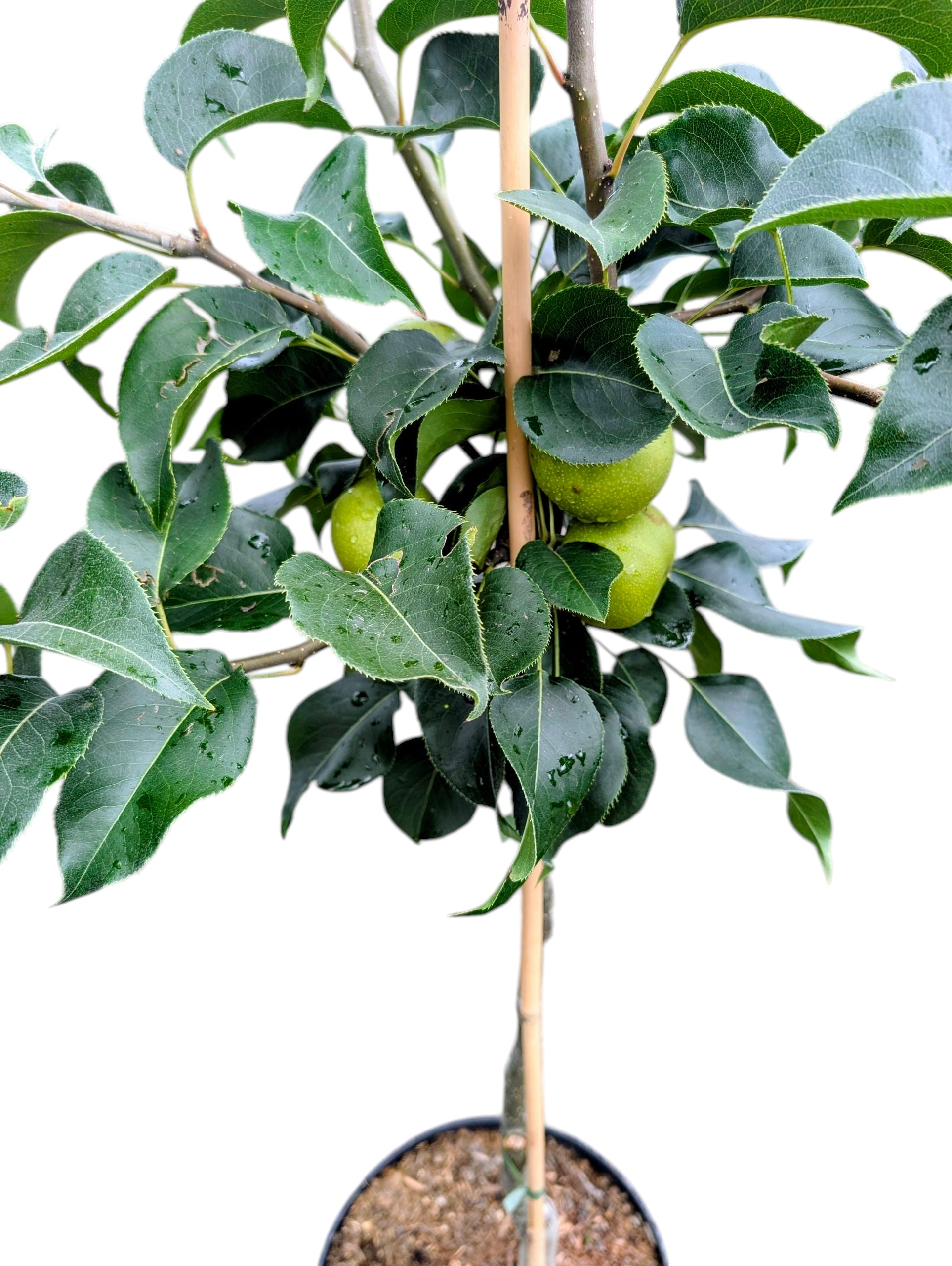 - Wuchsform: Die Nashi-Birne Nijisseiki ist ein mittelgroßer bis großer Baum mit einer aufrechten Wuchsform. Er kann eine Höhe von etwa 4 Metern erreichen und bildet eine breite, abgerundete Krone aus.