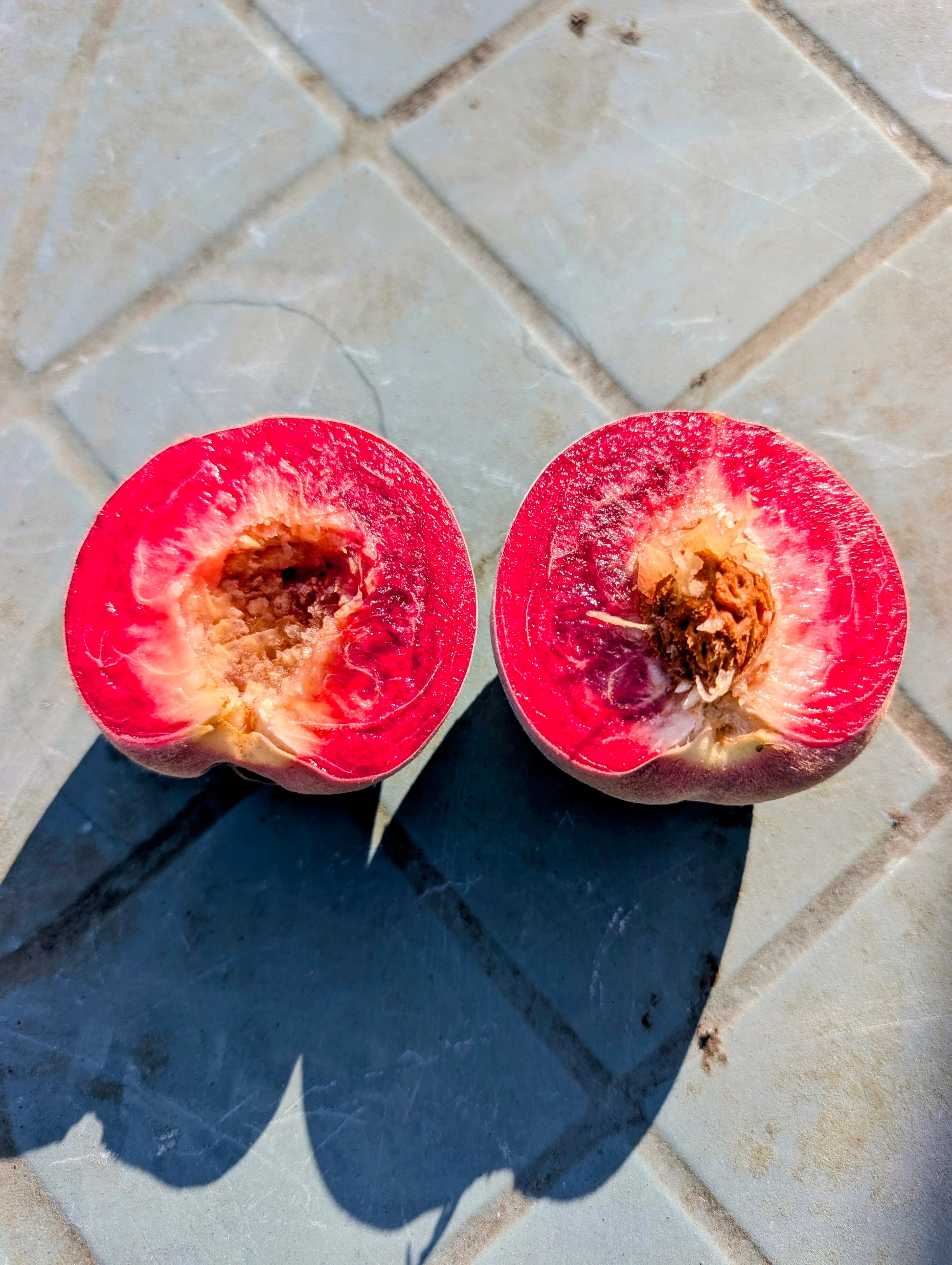 Der Echte Rote Weinbergpfirsich zeichnet sich durch seine kräftige, dunkelrote bis purpurfarbene Haut aus. Das Fruchtfleisch ist von goldgelber Farbe und weist eine angenehme Süße auf, die durch eine leicht säuerliche Note ergänzt wird. Die Früchte haben eine mittlere Größe und eine relativ feste Textur, was sie besonders für den direkten Verzehr oder die Verarbeitung zu Marmeladen und Säften geeignet macht.