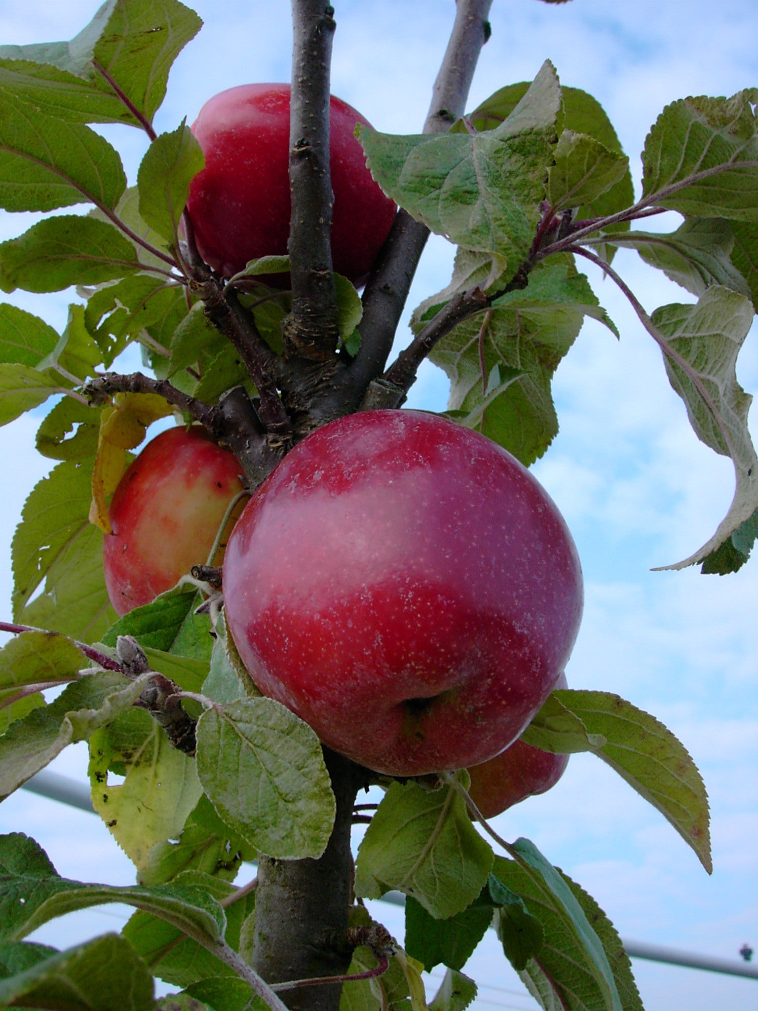 Mittelgroße bis große, rote Frucht. Saftig, süß-säuerlicher Geschmack . Erntezeit September - November. Starkwüchsig, robust und gesund.